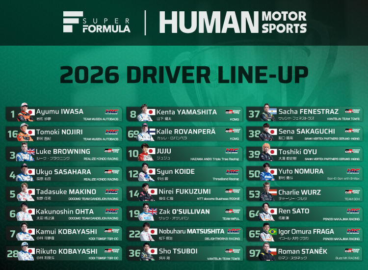 『国内最高峰で最速のフォーミュラレースシリーズ。 レースに使用する車両やタイヤ・エンジンに性能の差が無い「イコールコンディション」のため、ドライバーの実力やチームの戦略が勝敗につながります。世界的に見てもF1に次ぐ速さをもち、F1に乗るために必要な「スーパーライセンス」が最短2年で取得可能。それにより、世界の舞台で活躍している名だたるドライバーを輩出している、世界でも注目されているカテゴリーです。