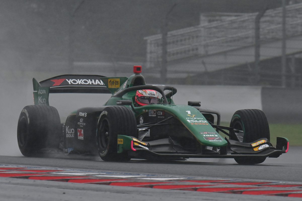 午前・午後ともにドライコンディションで行われたフリー走行から一夜明けた10月11日(土)の静岡県富士スピードウェイ。あいにく前夜遅くから天気が崩れ、この日は朝から雨が降り続いた。路面も完全なウェットコンディション。そんな中、午前10時10分からは全日本スーパーフォーミュラ選手権 第9戦のノックアウト予選が行われた。Q1は順当に進んだが、Q2では、終盤に岩佐歩夢(TEAM MUGEN)が100Rでハイドロを起こしてコースオフ、クラッシュしたため、赤旗が提示される波乱の展開。結局、セッションはこのまま終了となった。岩佐はトップタイムをマークした直後のクラッシュだったが、赤旗の原因を作ったということで全タイム抹消。その結果、PPを獲得したのはサッシャ・フェネストラズ(VANTELIN TEAM TOM’S)だった。これに続いたのは、坪井翔(VANTELIN TEAM TOM’S)。VANTELIN TEAM TOM’Sがフロントロウを独占している。3番手につけたのは、野尻智紀(TEAM MUGEN)。以下、牧野任祐(DOCOMO TEAM DANDELION RACING)、佐藤蓮(PONOS NAKAJIMA RACING)、大湯都史樹(SANKI VERTEX PARTNERS CERUMO・INGING)、太田格之進(DOCOMO TEAM DANDELION RACING)と続いている。岩佐は12番手からのス&タートとなった。
