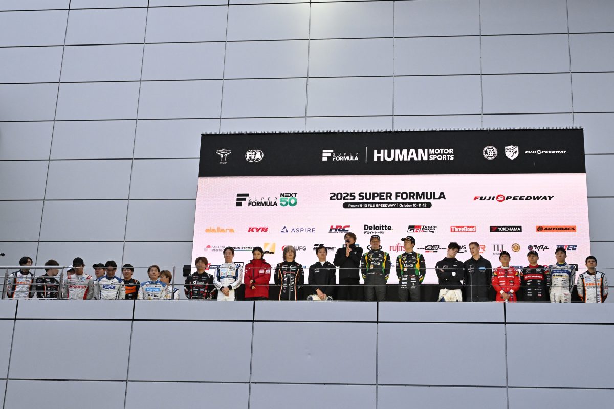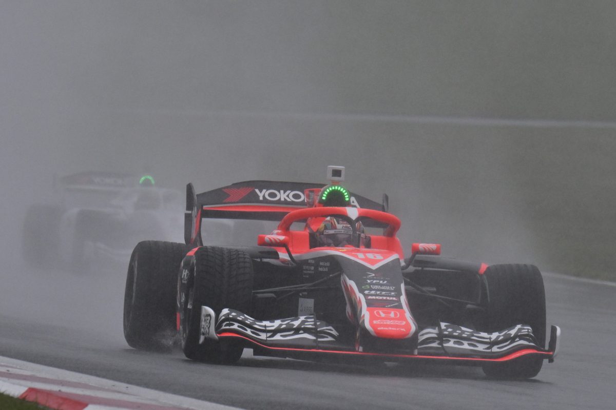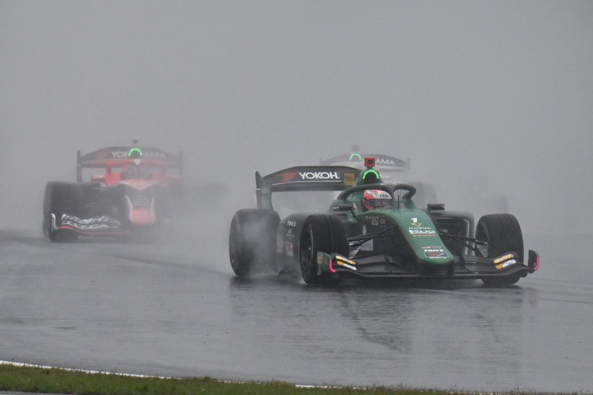 午前中に行われたノックアウト予選から約4時間。10月11日(土)の午後3時から、全日本スーパーフォーミュラ選手権 第9戦の決勝レースがスタートした。終日雨が降り続いたこともあり、このレースに関して、競技団はセーフティーカースタートを選択。しかし、走行が始まってから、雨脚はより強まったため、6周目には赤旗が提示される。そのため、各車6周を終えたところでダミーグリッドに停止。再開の時を待つ。その後、次第に雨脚が弱まり、霧も晴れてきたため、午後3時38分には再開10分前が告知され、午後3時48分にはレースが再開された。そこから各車は、再びセーフティーカーの先導でレースを開始。しかし、セーフティーカーランが続く中、雨脚が強弱を繰り返しただけでなく、午後4時を過ぎると各コーナーで霧が出て、視界が確保できなくなった。そこで、午後4時08分には、再び赤旗が提示される。各ドライバーは14周を終えたところで、メインストレート上にマシンをストップ。その後、午後4時20分からは、ブリーフィングルームにチーム代表者が集められて、ミーティングが行われた。その結果、第9戦の決勝レースは、ここで終了が決定。PPスタートのサッシャ・フェネストラズ(VANTELIN TEAM TOM’S)がそのまま優勝、坪井翔(VANTELIN TEAM TOM’S)が2位、野尻智紀(TEAM MUGEN)が3位表彰台を獲得することとなった。以下、牧野任祐(DOCOMO TEAM DANDELION RACING)、佐藤蓮(PONOS NAKAJIMA RACING)、大湯都史樹(SANKI VERTEX PARTNERS CERUMO・INGING)、太田格之進(DOCOMO TEAM DANDELION RACING)、イゴール・オオムラ・フラガ(PONOS NAKAJIMA RACING)、阪口晴南(SANKI VERTEX PARTNERS CERUMO・INGING)、山下健太(KONDO RACING)までが入賞。ただし、レース自体は成立したが、規定周回数に達していないため、各ドライバーに与えられるのは、ハーフポイントとなった。その結果、坪井は予選・決勝を合わせて9.5ポイントを獲得。トータルで104.5ポイントとなり、ランキングトップの座を堅持した。これに続いているのは、予選後にエンジン積み替えを行って10グリッド降格となり、最後尾スタートとなった岩佐歩夢(TEAM MUGEN)。岩佐は第9戦をノーポイントで終えることとなり、90ポイントに留まっている。これに続いているのは、2ポイントを加算して89ポイントとなった太田。さらに、4ポイントを追加して78ポイントとなった牧野。第9戦の予選・決勝で6.5ポイント加算となり、63.5ポイントとなった野尻と続いている。
