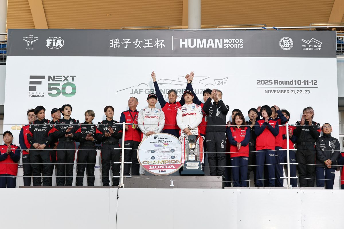 「2年連続でこのタイトルを獲ることができて、チームをやってきて(さらに)ひとつ成長できる、別の視界がやっと見えたなという感じですね。当然、『ドライバーのタイトルも獲って、チームのタイトルも獲る』ということも重要なんですけど、 我々のチームの力で用意できたクルマがドライバータイトルを獲れるようなクルマではなかったなと。とはいえ、チームで5勝もできたので、今年は力でもぎ獲ったかなと思っています。特に昨日、今日ですね。思いどおりに走れなくても、ドライバーふたりがきちっとポイントを獲って、チームタイトルを獲れたというところが非常にありがたいなと。そういう意味ではドライバーに感謝しています。