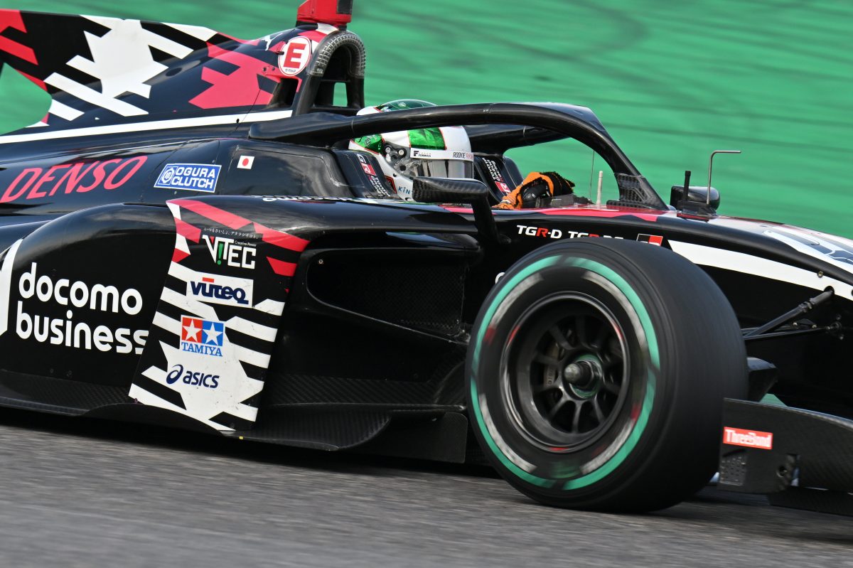 初日に引き続き、陽射しに恵まれた鈴鹿。この日最初となるセッション3は、午前9時から行われた。開始時の気温は11℃、路面温度は12℃。風はほぼないようなコンディションとなった。この日は、ドライバーの顔ぶれにも変更がありKONDO RACINGの1台には名取鉄平に代わりルーク・ブラウニングが、Kids com Team KCMGの8号車には体調不良でドクターストップがかかったカッレ・ロバンペラに代わり鈴木斗輝哉が、ThreeBond Racingには荒尾創大が、KDDI TGMGP TGR-DCの28号車には国本雄資がそれぞれ乗り込んでいる。ピットロード出口がオープンされると、多くのマシンがすぐにコースイン。初走行のドライバーたちは完熟走行から開始したが、レギュラー陣営はテストメニューに沿って、マシンセットアップを色々と試していく。その中で、まず1分38秒661というタイムをマークしてきたのは、初日の両セッションをトップタイムで締めくくったフラガ。開始から20も分ほどというところでは、ザック・オサリバン(ITOCHU ENEX WECARS TEAM IMPUL)がフラガを上回る1分38秒520をマークしてくる。その3分後には、牧野が1分38秒183をマークし、この時点でのトップに立った。その後、セッション開始から32分というところで、セッションは赤旗によって中断。これはチャーリー・ヴルツ(TEAM GOH)が逆バンクでコースオフしたため。プッシュラップに入っていたヴルツは、リヤが流れてハーフスピンし、コースから飛び出す形となった。このマシン回収が終わり、セッションが再開されたのは、午前9時40分。しかし、わずか6分後、再び赤旗が提示される。これはコース上にオイルが出たため。フラガのマシンがトラブルを抱え、ギヤボックスのオイルがシケインからストレートにかけて流れ出た。このオイル処理にはかなりの時間がかかり、次にセッションが再開したのは、午前10時14分。そこから各車は再びテストメニューに入ったが、セッションが終盤に差し掛かると、ニュータイヤでアタックするドライバーも現れる。残り時間が40分を切ったあたりでは、牧野が1分37秒441と、この日最初に37秒台に入ってくる。その後、セッションの残り時間が10分となった所では、佐藤蓮(PONOS NAKAJIMA RACING)が1分37秒921とやはり37秒台に入ってきた。さらに、残り時間が5分を切ってから、福住仁嶺(docomo business ROOKIE)が1分37秒783、坪井翔(VANTELIN TEAM TOM’S)が1分37秒640、阪口晴南(SANKI VERTEX PARTNERS CERUMO・INGING)が1分37秒701と37秒台に入ってきたが、牧野のタイムには及ばず。その結果、セッション3は牧野がトップで締めくくった。2番手には坪井、3番手には阪口。これに佐藤、福住、山下健太(Kids com Team KCMG)、オサリバン、大湯都史樹(SANKI VERTEX PARTNERS CERUMO・INGING)、サッシャ・フェネストラズ(VANTELIN TEAM TOM’S )、野尻智紀(TEAM MUGEN)と続いている。