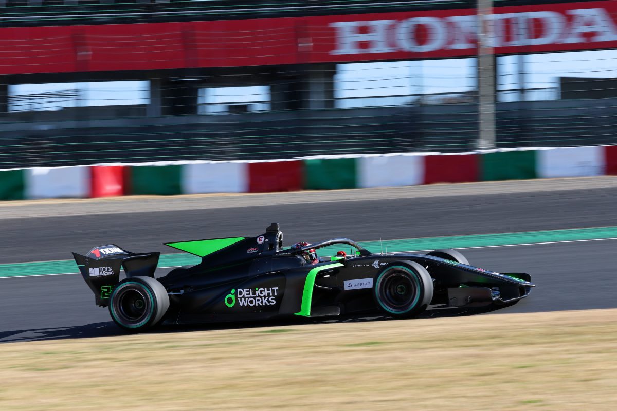 終日ウェットコンディションとなったから初日から一転、好天に恵まれた2月26日(木)の三重県・鈴鹿サーキット。ぐんぐんと気温も上がり、春の陽気となる中、全日本スーパーフォーミュラ選手権、第1回公式合同テストの2日目が行われた。この2日目のセッションで総合トップタイムをマークしたのは、福住仁嶺(NTT docomo Business ROOKIE)。これにイゴール・オオムラ・フラガ(PONOS NAKAJIMA RACING)、佐藤蓮(PONOS NAKAJIMA RACING)、岩佐歩夢(TEAM MUGEN AUTOBACS)、新チームを立ち上げた松下信治(DELiGHTWORKS RACING)と続いている。