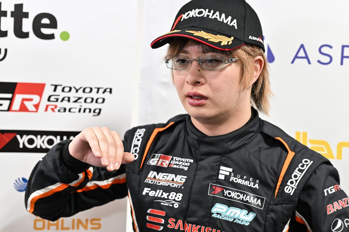 「路面が変わったりして悩ましいなか、さらに昨日とは気温も全然違って、昨日、下位にいたチームが上にきたりもしていますけど、そういうところを予想して、僕自身はクルマもドライビングも完璧に合わせ込めたと思っています。決勝は大湯(都史樹)選手が横(2番グリッド)にいて、彼は気合が入りまくっているんじゃないかなと。僕も含めて前の3人は結構アグレッシブなドライバーが揃っているので、何か起きるんじゃないかなとも思いますが、シンプルにスタートを決めて逃げたいと思います」